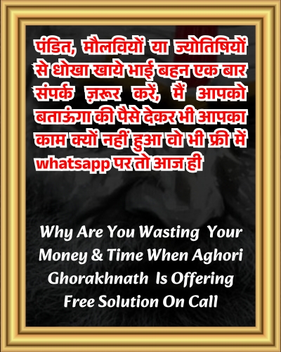 If You Are Facing Various Problems Related to Love, Marriage, Family, Husband-Wife, Job, Career, Money or Debt, or Any Other Type of Problems in Your Life, Please Contact Our Expert Aghori Ji and Consult Him for the Solution..... So Call Now and See Your Life Changing...